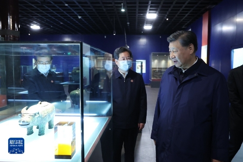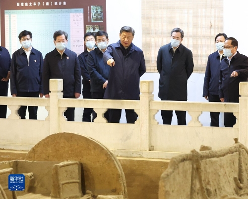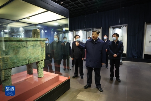 28日下午,習(xí)近平考察了位于安陽市西北郊洹河南北兩岸的殷墟遺址。殷墟是我國歷史上第一個(gè)文獻(xiàn)可考、為考古發(fā)掘所證實(shí)的商代晚期都城遺址。習(xí)近平步入殷墟博物館,仔細(xì)觀摩青銅器、玉器、甲骨文等出土文物。隨后,習(xí)近平來到車馬坑展廳,察看商代畜力車實(shí)物標(biāo)本和道路遺跡。他指出,殷墟出土的甲骨文為我們保存3000年前的文字,把中國信史向上推進(jìn)了約1000年。殷墟我向往已久,這次來是想更深地學(xué)習(xí)理解中華文明,古為今用,為更好建設(shè)中華民族現(xiàn)代文明提供借鑒。中國的漢文字非常了不起,中華民族的形成和發(fā)展離不開漢文字的維系。在這方面,考古事業(yè)居功至偉??脊殴ぷ饕^續(xù)重視和加強(qiáng),繼續(xù)深化中華文明探源工程。中華文明源遠(yuǎn)流長,從未中斷,塑造了我們偉大的民族,這個(gè)民族還會(huì)偉大下去的。要通過文物發(fā)掘、研究保護(hù)工作,更好地傳承優(yōu)秀傳統(tǒng)文化。習(xí)近平強(qiáng)調(diào),中華優(yōu)秀傳統(tǒng)文化是我們黨創(chuàng)新理論的“根”,我們推進(jìn)馬克思主義中國化時(shí)代化的根本途徑是“兩個(gè)結(jié)合”。我們要堅(jiān)定文化自信,增強(qiáng)做中國人的自信心和自豪感。