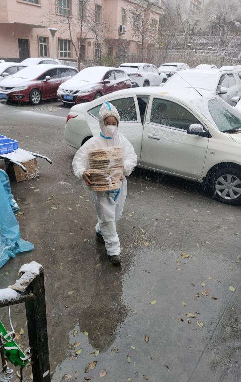 買合布孜木·艾合買提是新疆科普雜志社的一名編輯,目前下沉至天山區(qū)團結路街道領館南社區(qū),主要負責物資保供工作。她每天早晨吃完早飯,更換防護服下樓與院內(nèi)超市銜接登記居民所需品。從上午10點左右開始聯(lián)系各個樓的志愿者來接蔬菜包等生活必需品,并督促及時配送到位,12點左右將送到小區(qū)門口的藥品,進行消殺和登記,安排配送員送至居民家里。這些是她下沉后每天都要重復做的工作。“小小”的她已經(jīng)成為了領館南社區(qū)防疫一線工作人員這個大群體的一部分了。