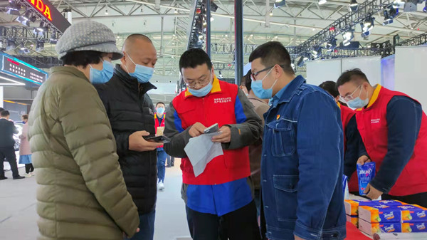 新疆電機(jī)工程學(xué)會(huì)會(huì)員單位國(guó)網(wǎng)烏魯木齊供電公司黨員服務(wù)隊(duì)員在新疆國(guó)際會(huì)展中心車(chē)展現(xiàn)場(chǎng)設(shè)置活動(dòng)展臺(tái),同步宣傳購(gòu)車(chē)裝充電樁“一站式”服務(wù)