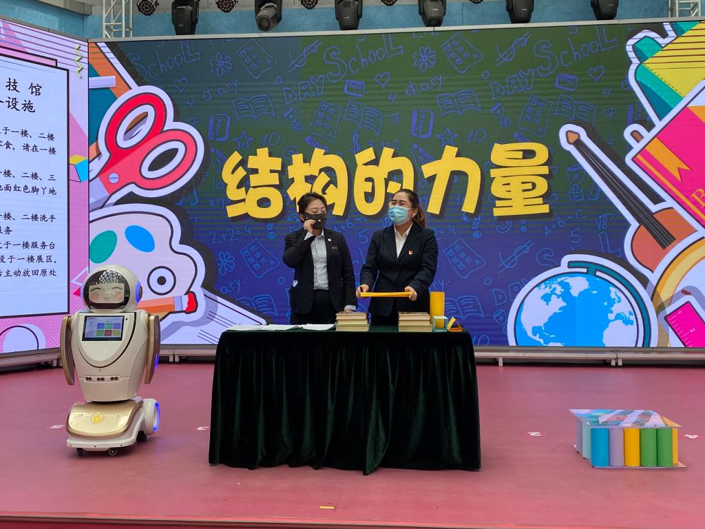 機器人輔導員的一項重要工作是與科技館科技輔導員在科普劇場共同表演科普實驗《結構的力量》,進行“人機交互輔導”。實驗過程中,科技館科技輔導員負責演示、操作,機器人輔導員輔助解釋、與臺下觀眾互動問答,這種新穎有趣的形式引得現場觀眾熱情高漲、踴躍參與。“孩子還是第一次看機器人給我們講實驗,很吸引人。”