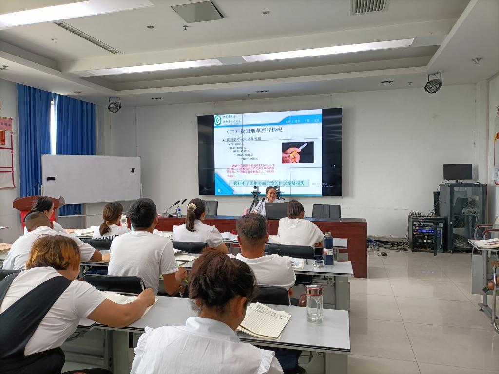 今年5月31日是第35個(gè)“世界無煙日”。為加大控?zé)熜麄髁Χ?,進(jìn)一步提高全社會對吸煙危害的認(rèn)識,當(dāng)日上午,新和縣科協(xié)聯(lián)合縣衛(wèi)健委在黨校1號教室對黨校國家通用語言培訓(xùn)班學(xué)員開展以“煙草威脅環(huán)境”為主題的世界無煙日專題講座。