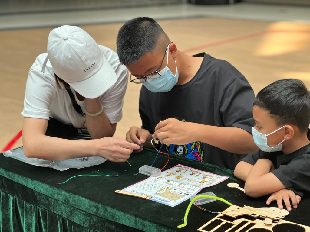 科技動手派科學教育活動《四通雙電機遙控車》《瞄準射擊科技號》通過啟發、提問和手工制作等形式,讓同學們了解機械的基本結構和傳感器的簡單應用,培養同學們的創作能力、思維能力及動手能力。現場還通過科學探秘、知識問答等互動形式為觀眾送去了精美的科學禮品,將現場活動氛圍推向高潮。