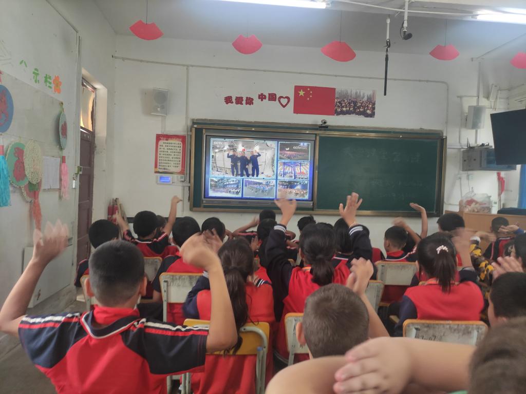 當(dāng)天下午,神舟十六號(hào)航天員景海鵬、朱楊柱、桂海潮在太空艙進(jìn)行科普授課;地面課堂上,中心小學(xué)的同學(xué)們聚精會(huì)神的坐在大屏前和全國(guó)各地的同學(xué)們一起收看這場(chǎng)精彩科普課。