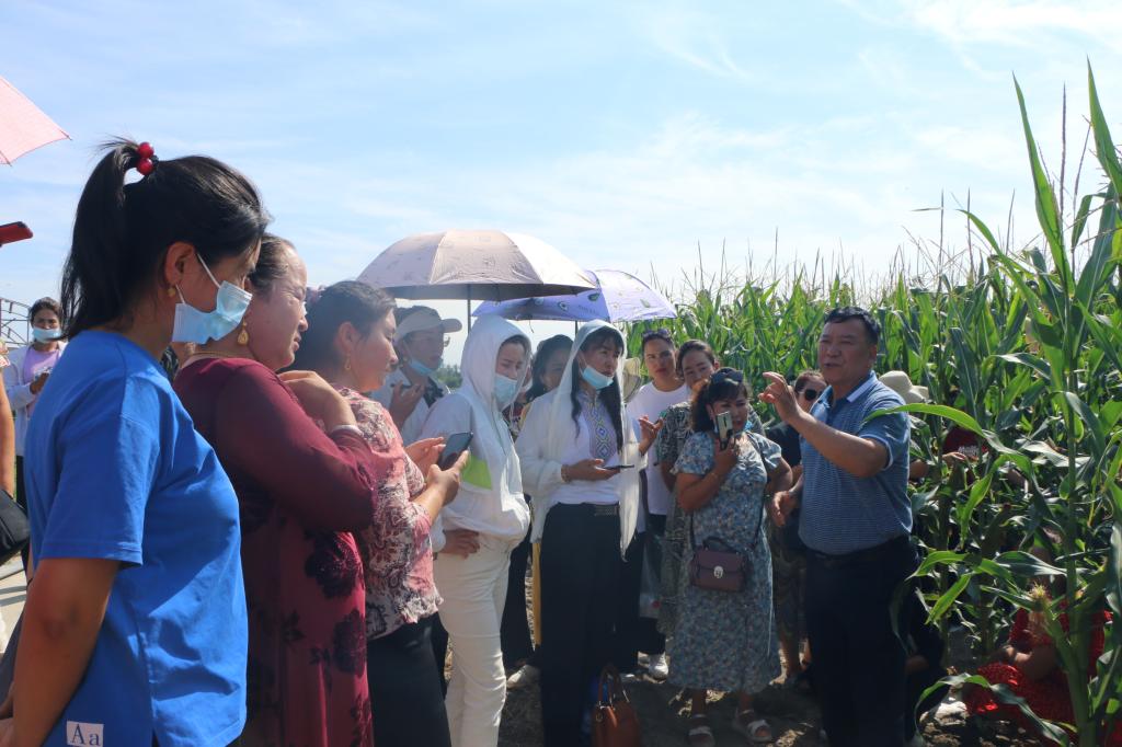 培訓過程中,學員專心聽講并用手機錄像記錄專家講課內容。在田間地頭,新疆農業科學院綜合試驗場相關專家進行現場講解和示范,并就學員們提出的問題進行答疑解惑。“膜下滴灌栽培模式種植的西瓜株距是多少厘米?”“甜瓜果實留在第幾個節位比較合適?”“復播玉米產量高的品種是什么?”一個個問題代表著學員們對科學種植知識的渴望,通過現場交流學習,進一步增強了學員們對科學種植的認識。