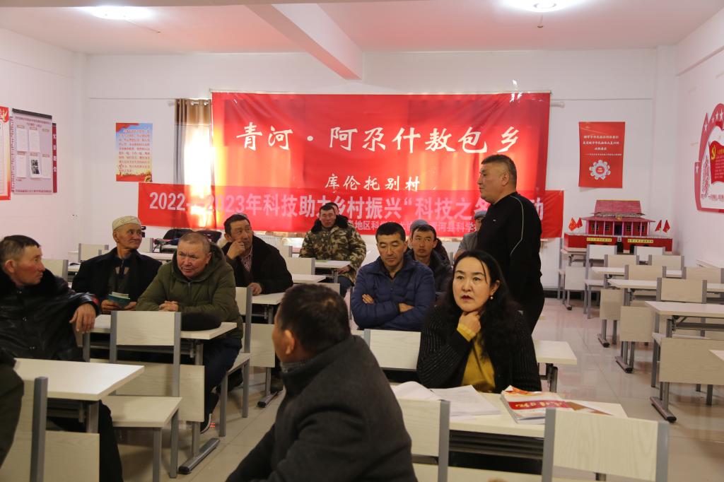 為全面貫徹落實黨的二十大精神,加快農(nóng)業(yè)農(nóng)村現(xiàn)代化,推動鄉(xiāng)村產(chǎn)業(yè)升級,增強可持續(xù)發(fā)展能力,同心協(xié)力全面推進鄉(xiāng)村振興,2月20日,阿勒泰地區(qū)科協(xié)科技工作者和農(nóng)業(yè)技術(shù)推廣中心專家前往青河縣阿熱勒鎮(zhèn)布哈巴村、冬特村、阿尕什敖鄉(xiāng)阿克加爾村、庫倫托別村,開展科學(xué)養(yǎng)殖相關(guān)培訓(xùn)和反邪教宣傳活動。