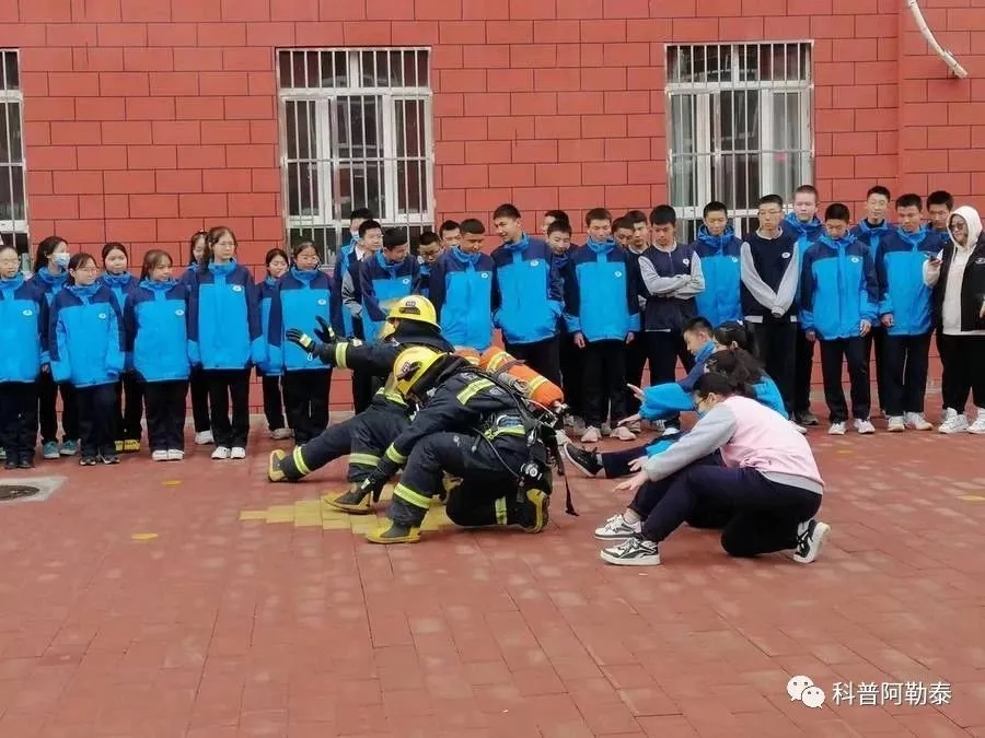 在消防安全現(xiàn)場演練環(huán)節(jié),阿勒泰市消防救援大隊(duì)的消防隊(duì)員們現(xiàn)場模擬了營救火場被困人員,并帶領(lǐng)學(xué)生們進(jìn)行現(xiàn)場消防安全教學(xué),強(qiáng)化師生的消防安全意識,普及安全知識,提高學(xué)生們的自我保護(hù)能力。