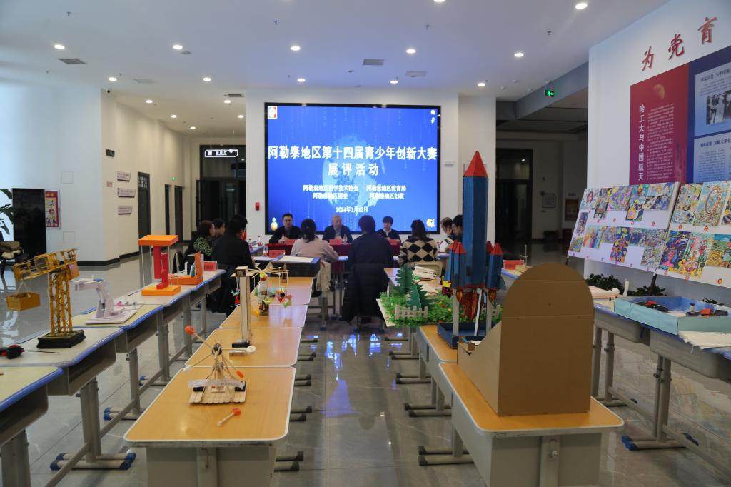 2024年1月12日至14日,阿勒泰地區科協、地區教育局、地區團委、地區婦聯聯合召開第十四屆青少年創新大賽展評活動,來自地直和阿勒泰市中小學校的九位老師參與評選,阿勒泰市直小學和各類公眾200多人在阿勒泰天文館參觀展評作品。此次展評活動共選出獲獎作品58個,其中一等獎12個、二等獎22個、三等獎24個。