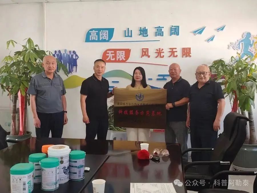 2024年,阿勒泰山地生物科技有限公司等6家單位,在科技示范帶動、合作推廣、科學研究等方面取得實效,并被新疆老科協命名為2024年度科技服務示范基地。地區老科協調研組在開展實地調研的同時,為阿勒泰山地生物科技有限公司進行授牌。此舉進一步激發了廣大老科技工作者的老有所為、積極作為的工作熱情。