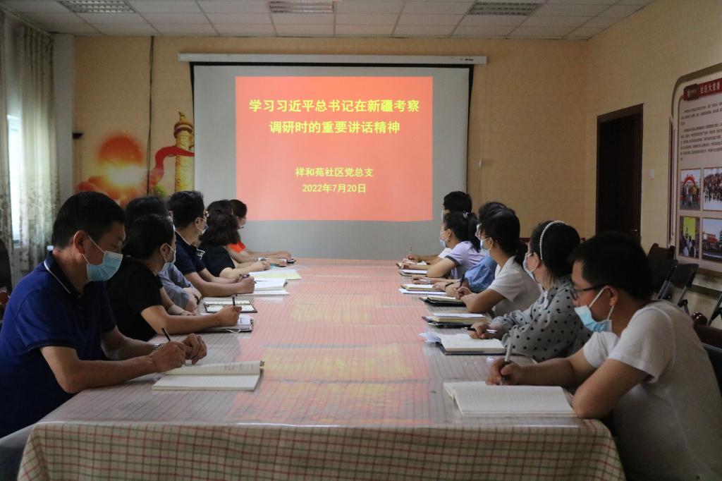 7月20日上午,克拉瑪依區昆侖路街道祥和苑社區召開黨員干部大會,通過收聽收看視頻形式,專題學習貫徹習近平總書記在新疆考察調研時的重要講話精神。
