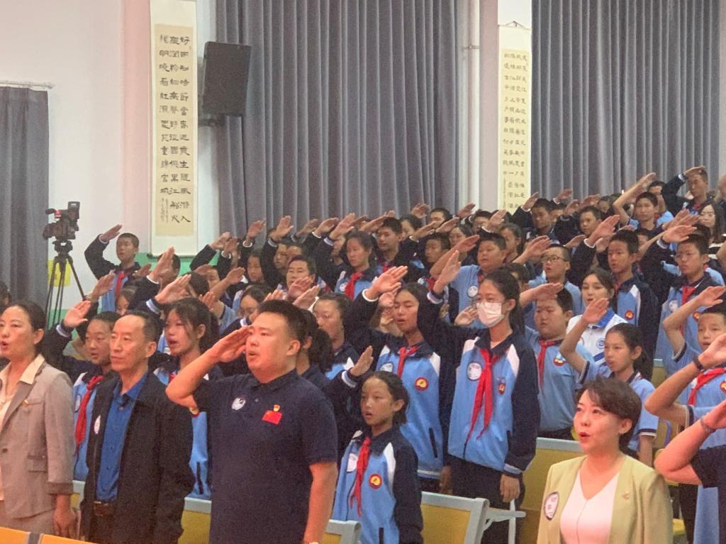 活動最后,在高亢嘹亮的宣誓聲中,現場全體中國飛天夢科技志愿團成員一起放飛手中的紙飛機,希望一架架紙飛機能夠承載同學們的夢想,飛向更高更廣闊的天空。