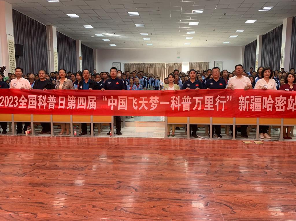 9月22日,2023全國科普日第四屆“中國飛天夢 科普萬里行”活動在哈密市第九中學舉行。哈密市科協黨組副書記、主席蘇勝,伊州區人民政府黨組成員、副區長閻潔,伊州區科協黨支部書記、主席海仁沙·賽買提等參加活動。