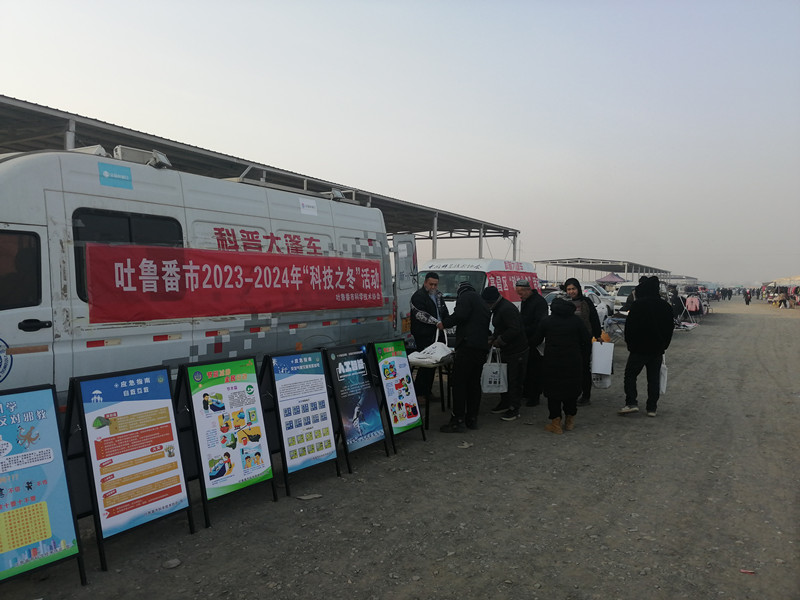 2024年1月3日,按照吐魯番市2023-2024年“科技之冬”活動暨火洲之冬暖心惠民活動安排部署,吐魯番市科協(xié)聯(lián)合高昌區(qū)科協(xié)深入恰特喀勒鄉(xiāng)恰特喀勒村巴扎市場開展了科普大篷車進(jìn)基層聯(lián)合行動。