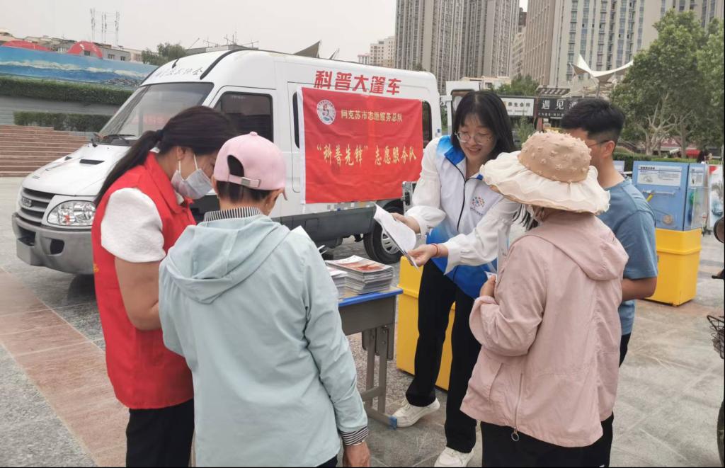 5月20日,阿克蘇市組織開展2023年“科技活動周”活動,阿克蘇市積極組織科技志愿者在阿克蘇市世紀(jì)廣場開展科普宣傳活動,發(fā)揮“科普大篷車聯(lián)動科技志愿服務(wù)”特色,讓科普宣傳活動“火”起來。