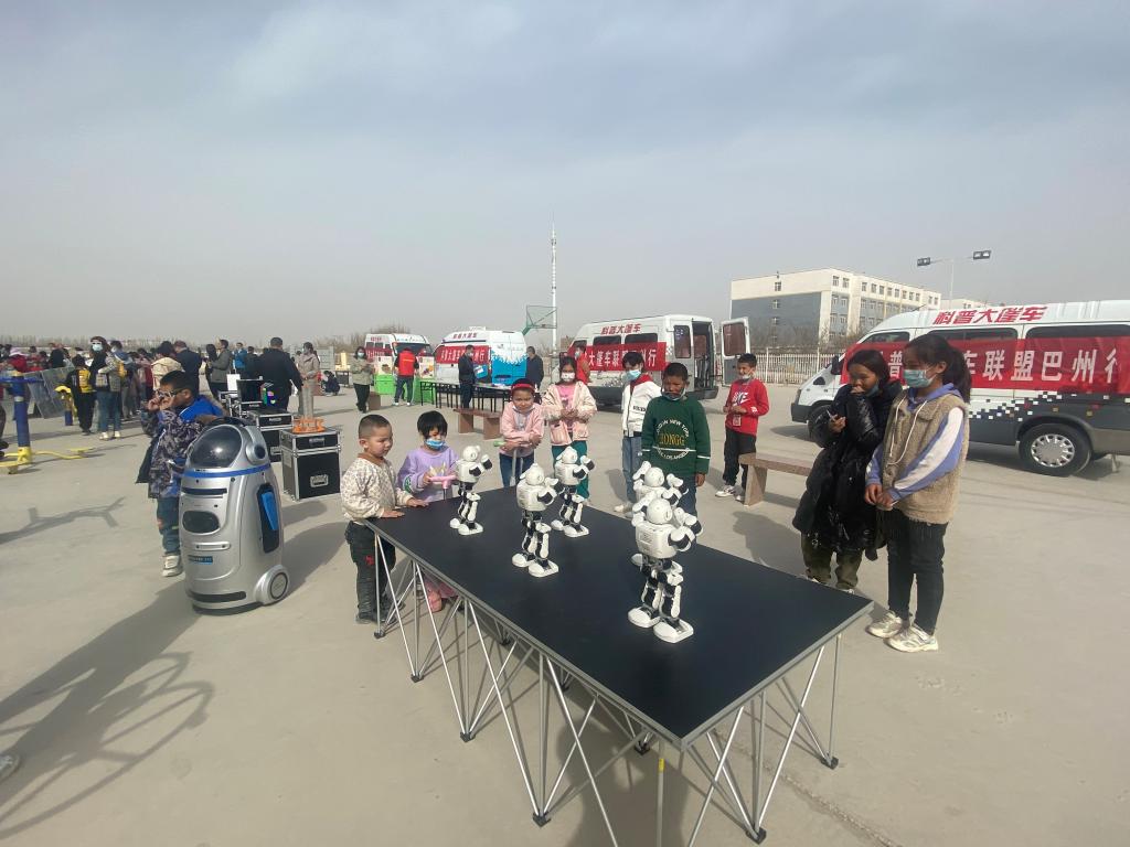 3月12日下午,自治區科協、巴州科協科普大篷車聯盟巴州一行來到庫爾勒市西尼爾鎮金富特種紗業有限公司開展科技志愿服務活動。
