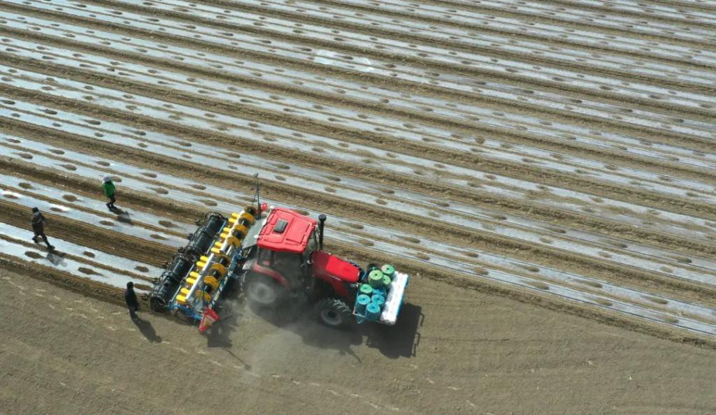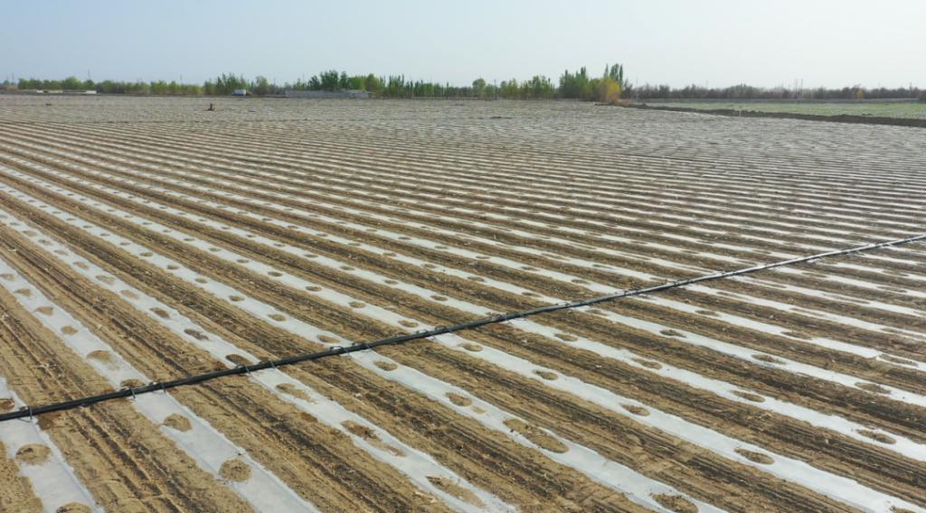 4月26日,春光明媚,行走在尉犁縣團結鎮(zhèn)東海子村田地間,連片的棉田一眼望不到邊。地膜下,一根根黑色滴灌帶如同“毛細血管”,將水精準滴灌到每粒種子,滋潤著整片棉田。