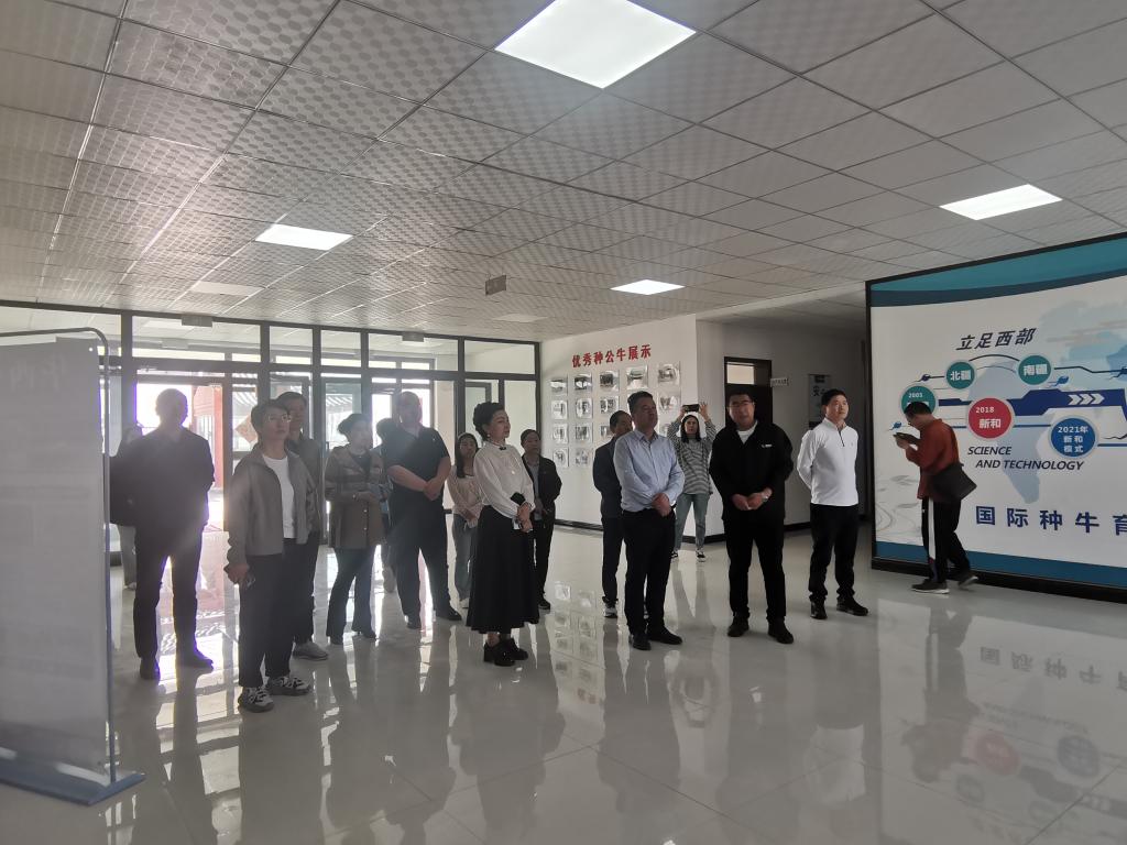 在新疆鼎新種業科技有限公司,在企業負責人的講解下,深入了解該企業的種牛品種、培育情況、銷售情況及發展前景等等,并就喀什地區種牛業發展情況與負責人進行交流。雙方表示,今后要加強合作,互相學習,共同助推新疆種牛業高質量發展。