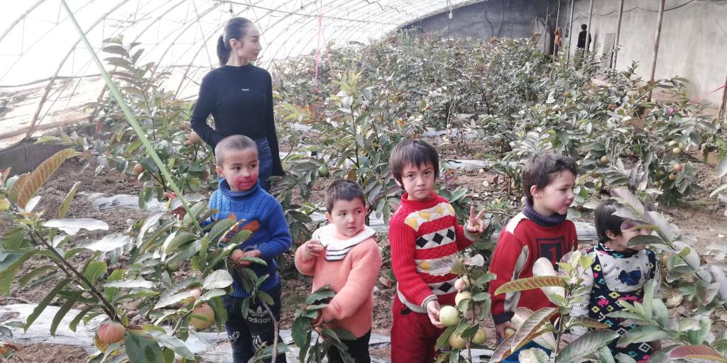 新春伊始,天寒地凍,寒風凜冽,走進喀什禾富生態農業科技有限公司,公司管理井然有序,面貌干凈整潔,映在眼前的是一眼望不到邊的溫室大棚,步入其中一座,溫潤的氣息撲面而來,黃澄澄的檸檬、紅彤彤的火龍果、散發著異香的芭樂、枝條尚荏弱的芒果……都是往日在新疆難得一見的水果,熱情的大棚主人隨手摘下幾顆邀請客人們品嘗,瞬間讓人暖意融融。在這里,有紅寶石芭樂、無籽檸檬、金鉆火龍果等知名水果,一棚一品,一棚一特色,給人一種水果盛宴的感覺,更是豐富多彩的科普體驗。