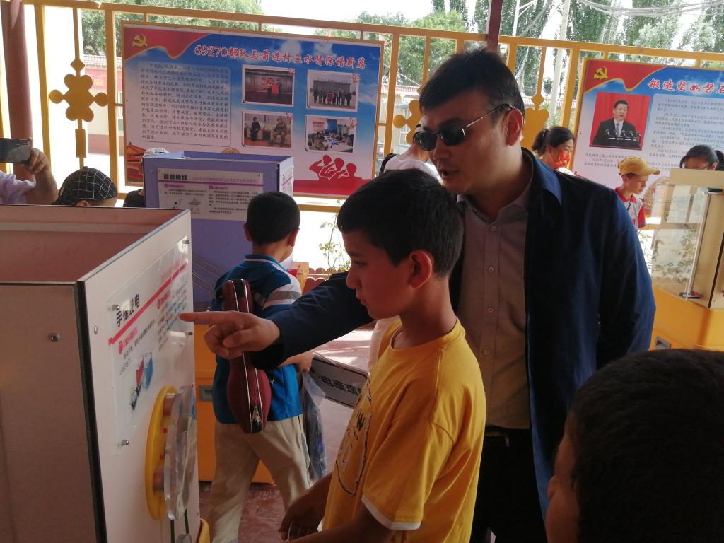 活動現場,喀什市科協帶來的科普大篷車使孩子們更加興奮,孩子們的探討聲、驚嘆聲此起彼伏,整個現場充滿了歡聲笑語,王天雨同志給孩子們講解儀器的科學原理及使用方法,讓孩子們增長了見識、開闊了眼界,讓他們更加直觀、真切地感受到了科技的無窮魅力。