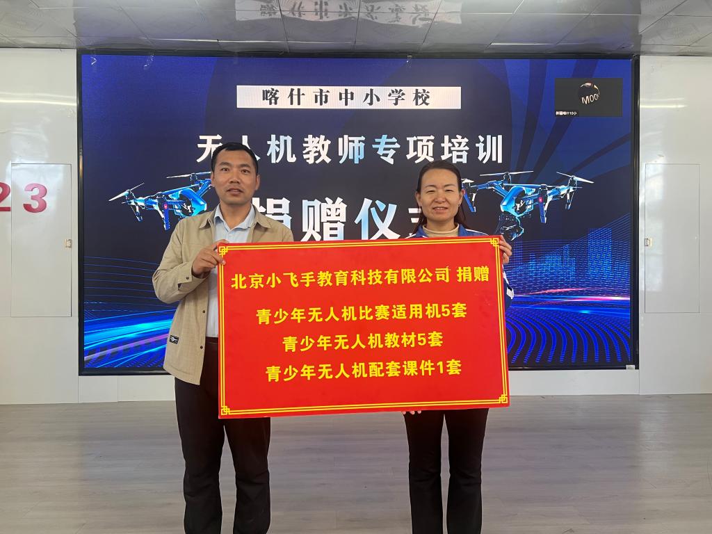 活動最后,喀什地區科協向喀什市第十小學轉贈了來自北京小飛手捐贈的無人機器材和教學資源包。