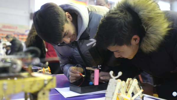 當(dāng)天,地區(qū)文化體育活動(dòng)中心籃球場(chǎng)內(nèi),各參賽隊(duì)隊(duì)員紛紛拿出自己的得意作品,向觀眾們演示操作,讓他們體驗(yàn)科技的力量。