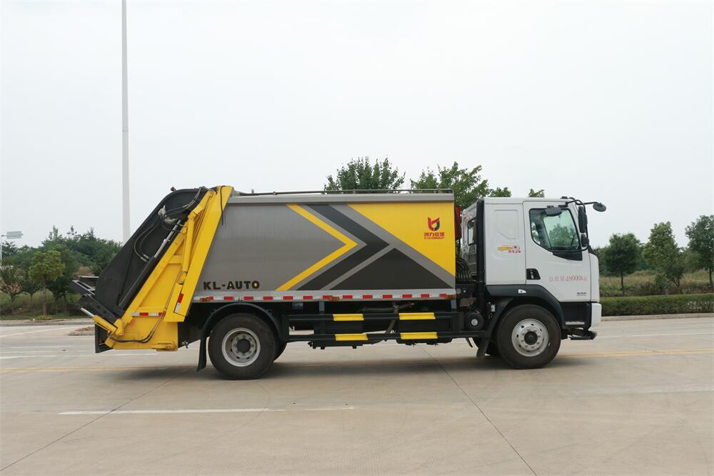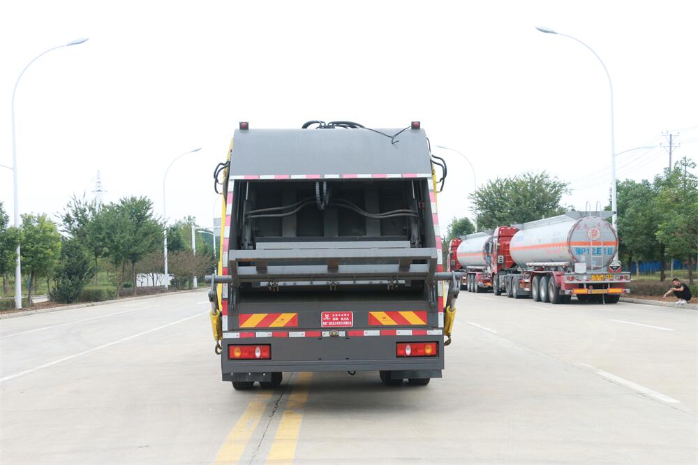 上裝配置:垃圾箱容積:12方,新款平面弧形廂體,廂體材料為武鋼優(yōu)質(zhì)碳鋼,PLC一鍵操作**,手電一體操作模式,兩側(cè)雙電控,帶駕駛室內(nèi)操作,底板支撐加強(qiáng),雙向壓縮,開放式易清潔污水箱。壓縮式垃圾車采用機(jī)電液一體化技術(shù),借助機(jī)、電、液聯(lián)合自動(dòng)**系統(tǒng)、電腦**、手動(dòng)操作系統(tǒng),通過填裝器和推鏟等專用裝置,實(shí)現(xiàn)垃圾倒入、壓碎或壓扁、強(qiáng)力裝填,把垃圾擠入車廂并壓實(shí)和推卸,污水全部進(jìn)入污水廂,解決了垃圾運(yùn)輸過程中的二次污染的問題。壓縮式垃圾車具有自動(dòng)反復(fù)壓縮以及蠕動(dòng)壓縮功能,壓縮比高、密封性好、裝載量大﹑操作方便、環(huán)保性好﹑整車?yán)霉β矢叩葍?yōu)點(diǎn)。作業(yè)自動(dòng)化,垃圾收集方式簡便、高效。后翻轉(zhuǎn)機(jī)構(gòu)選裝:1、掛塑料桶式翻轉(zhuǎn)機(jī)構(gòu);2、掛鐵桶式翻轉(zhuǎn)機(jī)構(gòu);3、擺臂式翻轉(zhuǎn)機(jī)構(gòu); 4、簸箕斗式翻轉(zhuǎn)機(jī)構(gòu)。