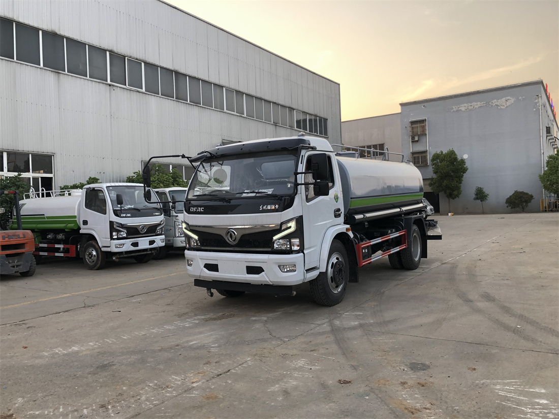 灑水車前裝有鴨形噴嘴或圓頭沖嘴,后面裝有圓柱開灑水噴嘴或蓮蓬頭噴嘴,后部有一工作平臺,裝配有水炮。后部還可裝8個噴嘴(選裝)。