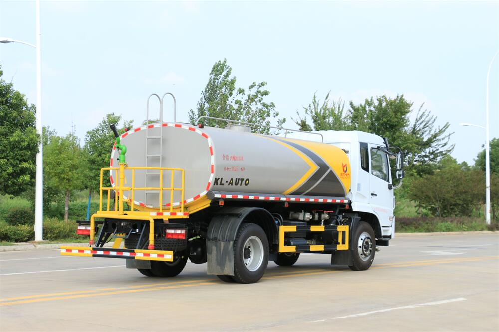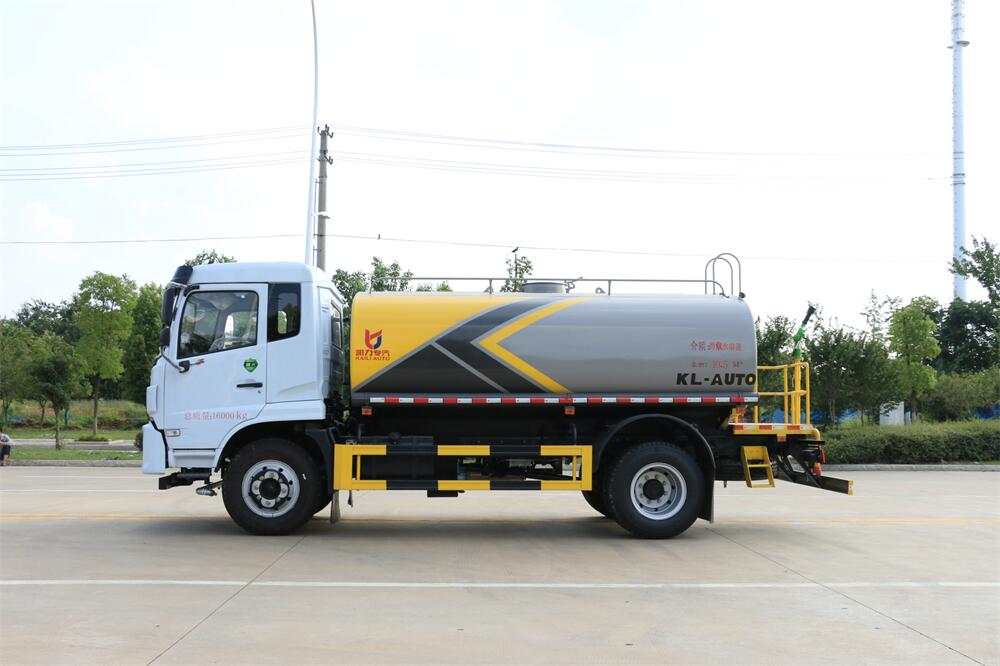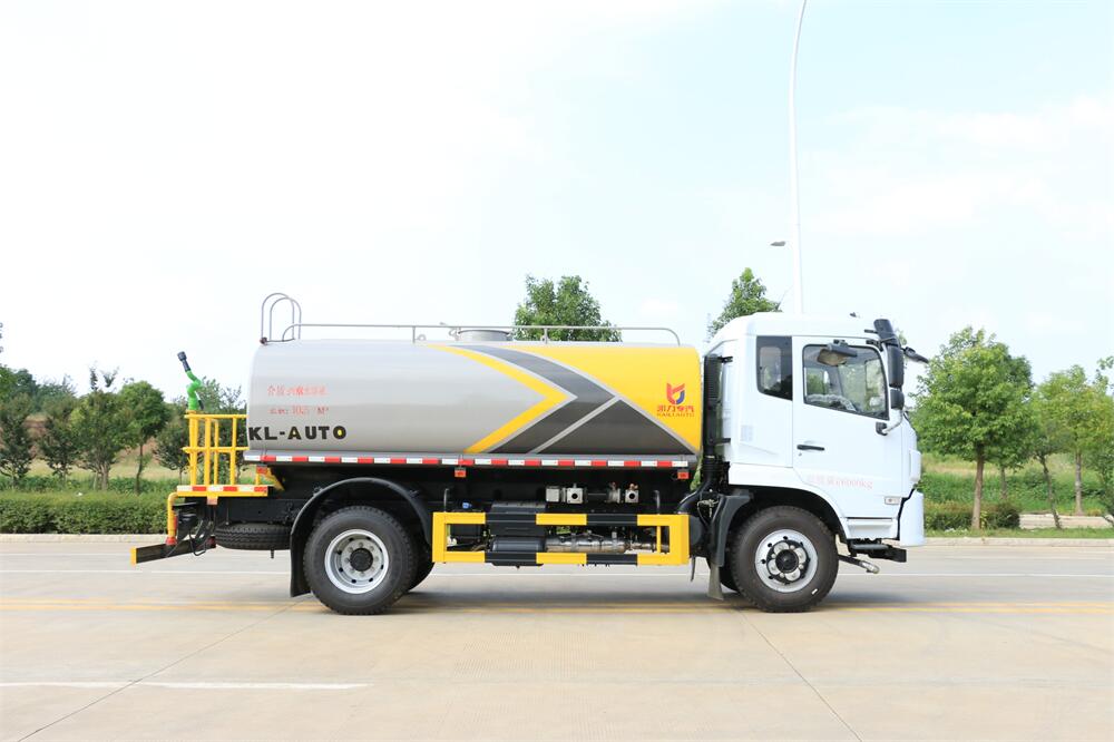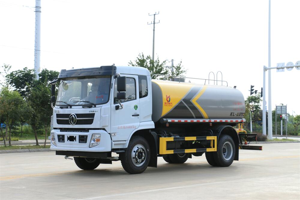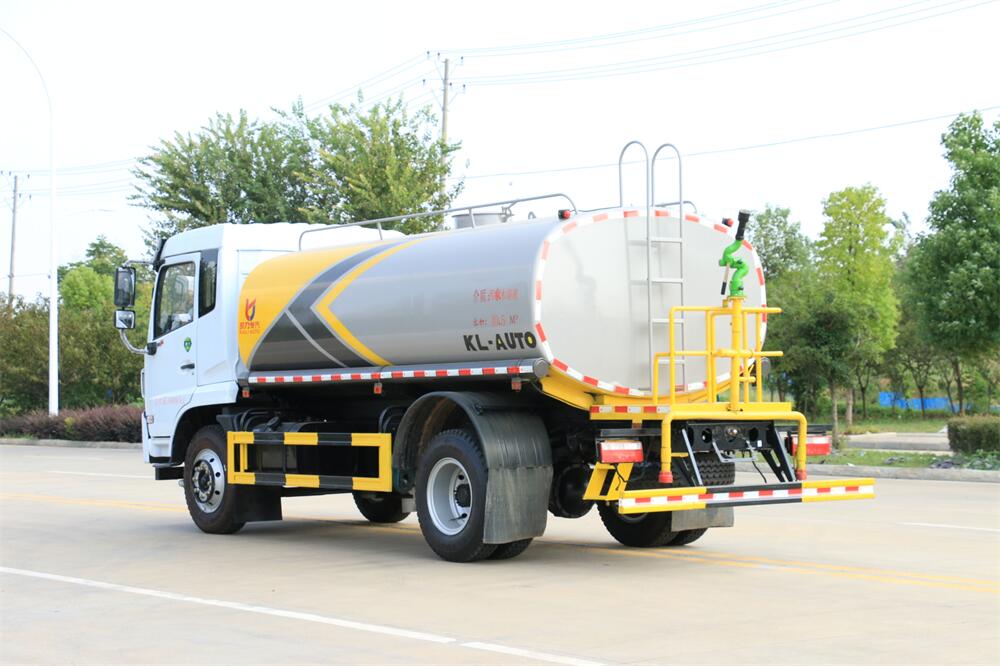 灑水車前裝有鴨形噴嘴或圓頭沖嘴,后面裝有圓柱開灑水噴嘴或蓮蓬頭噴嘴,后部有一工作平臺,裝配有水炮。后部還可裝8個噴嘴(選裝)。