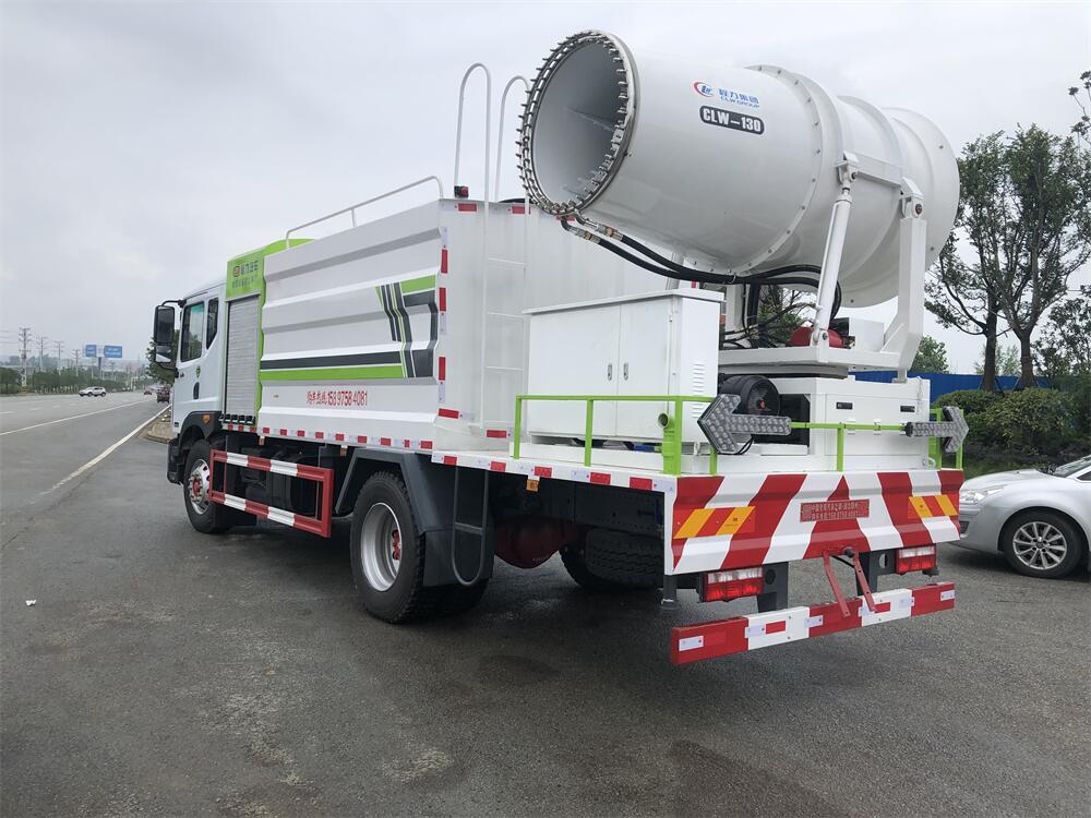 上裝配置:罐體容積為 12立方,選配風(fēng)送式霧炮機(jī)組射程30米、40米、50米、60米、80米、100米、120米霧炮,罐體鋼板為4mm碳鋼Q235材質(zhì),罐內(nèi)隔板具有防波作用,以減輕汽車行駛時(shí)罐體液體沖擊,罐體及整車外形尺寸按照公告。帶大功率專用灑水泵,泵可自吸自排,整車前沖、后灑、側(cè)噴、帶65消防接口,后平臺(tái)配CLW-50、CLW-60、CLW-80、CLW-100、CLW-120型風(fēng)送式霧炮機(jī)組;罐體前封頭配大功率柴油發(fā)電機(jī)組;前封頭帶水位計(jì),后平臺(tái)主管路帶1寸澆花接口,后爬梯。帶兩根輸水管及陰陽(yáng)端。罐體顏色:銀/灰/綠,罐體兩側(cè)噴“多功能抑塵車”字樣,貼反光標(biāo)示。