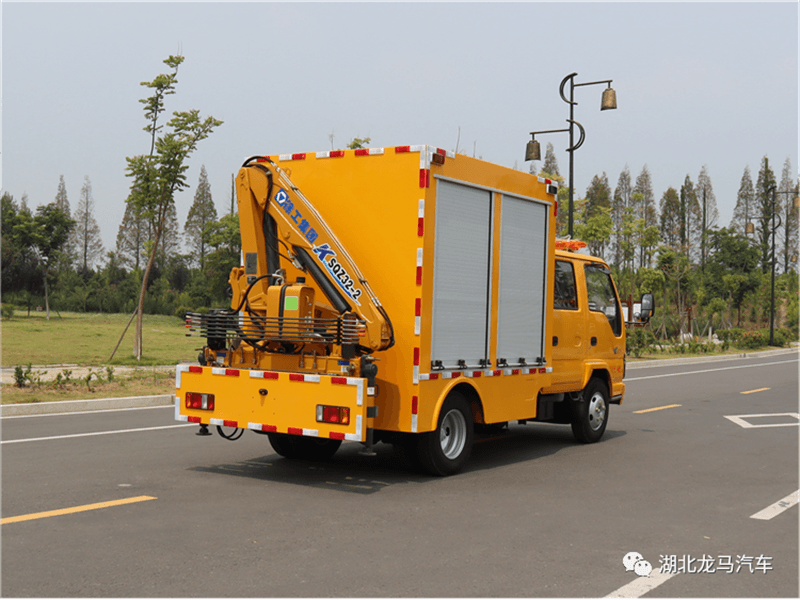 車輛尾部安裝2噸徐工折臂吊機(jī),**大額定起重質(zhì)量:2000Kg,車輛兩側(cè)都可操作吊機(jī)工作。帶2個(gè)液壓支腿。