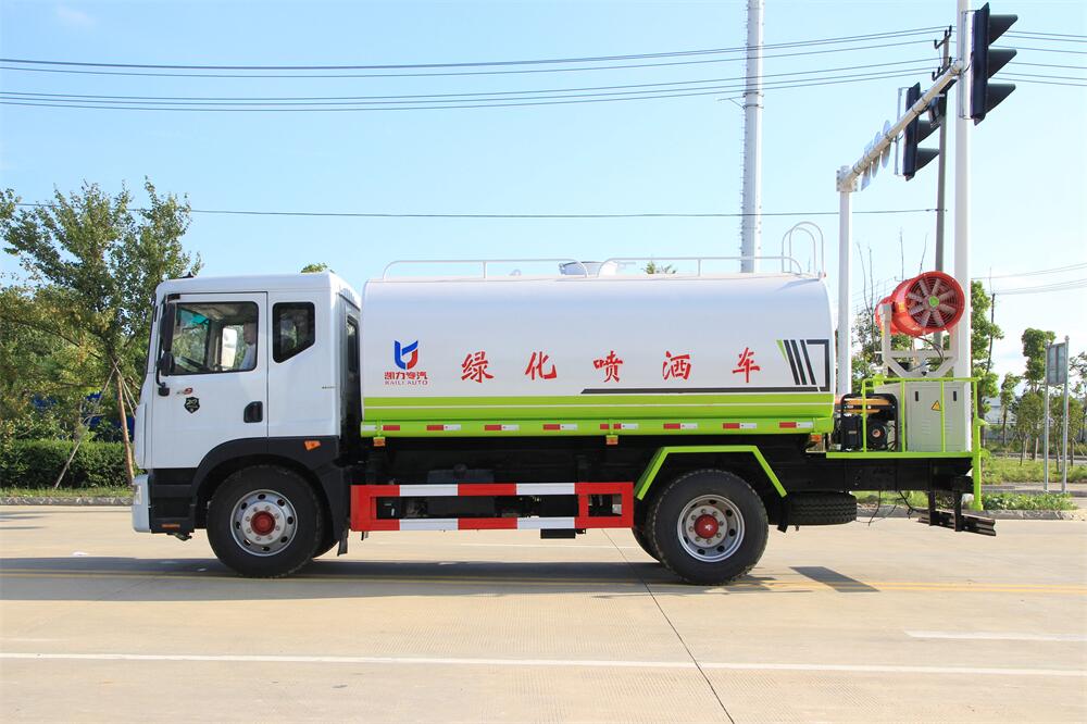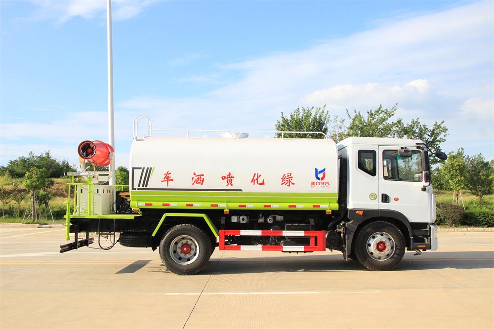 上裝配置:罐體容積 12-15立方,風送式霧炮機組30米,40米選擇,罐體采用國標Q235碳鋼材質,罐體厚度4MM,前后封頭5MM加厚型,罐體內雙層隔板具有防波蕩作用,以減輕汽車行駛時罐內液體沖擊;灑水車整車及外形尺寸嚴格按照**機動車公告制作而成;裝配大功率專用灑水泵,前沖、后灑、側噴、后平臺帶綠化灑水炮,灑水炮可全方位旋轉,可連續調成直沖狀、大雨、小雨、毛毛雨;配消防接口,自流閥,濾網,帶自吸自排功能。前封頭帶水位計,后平臺主管路帶1寸澆花接口,后爬梯,帶1個消防接頭,帶1個自流閥,1個過濾裝置,其余標配。