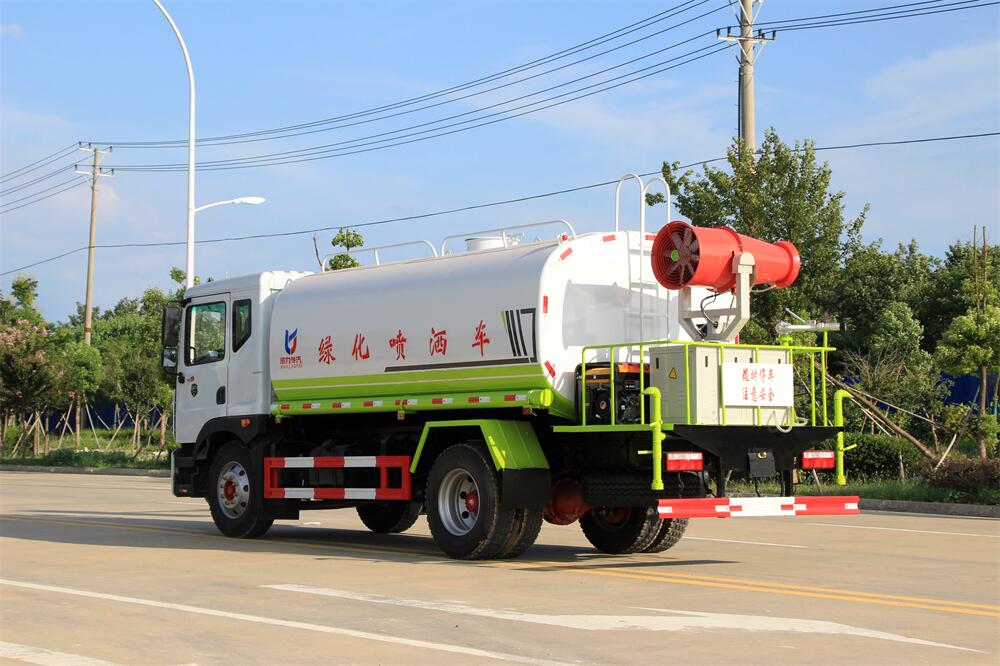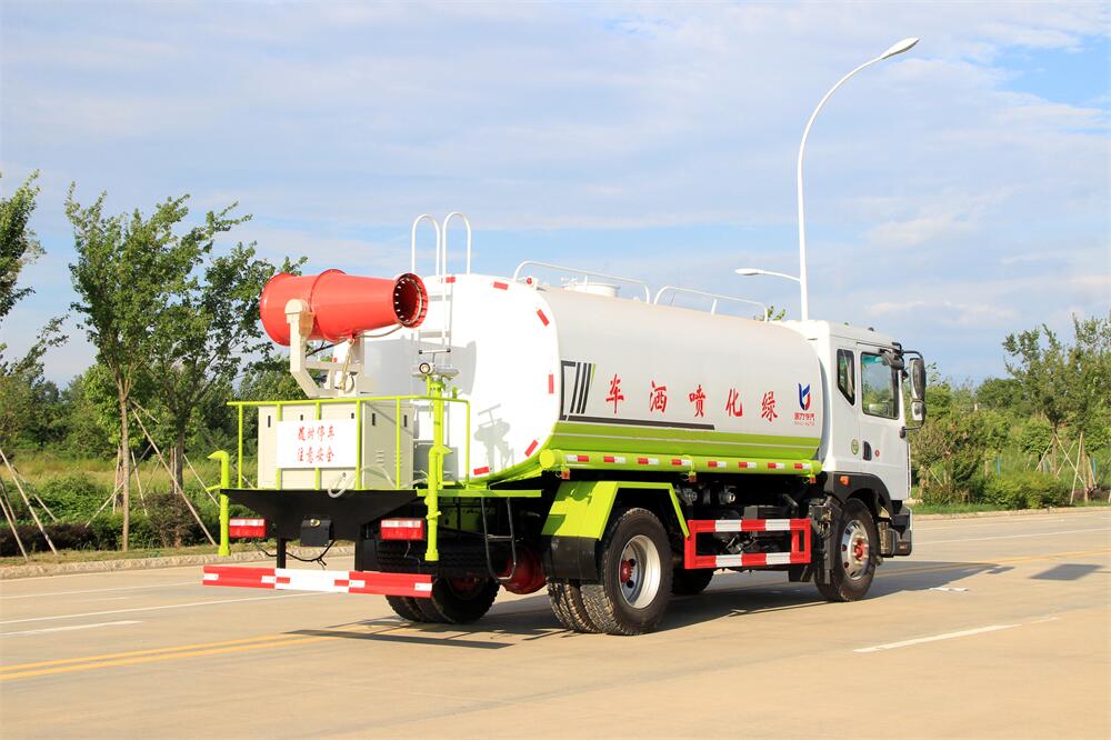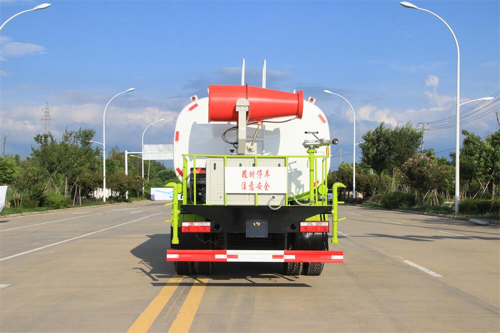 主要由發動機帶動變速箱,變速箱上安裝的取力器帶動灑水泵,灑水泵產生動力,將罐體內部的液體通過管網噴灑出去。工作范圍:自吸高度:≥7m,灑水寬度:≥14m,**大射程:≥28m;可調節成柱狀,射程≥28m;也可調節成霧狀,射程≥5m。