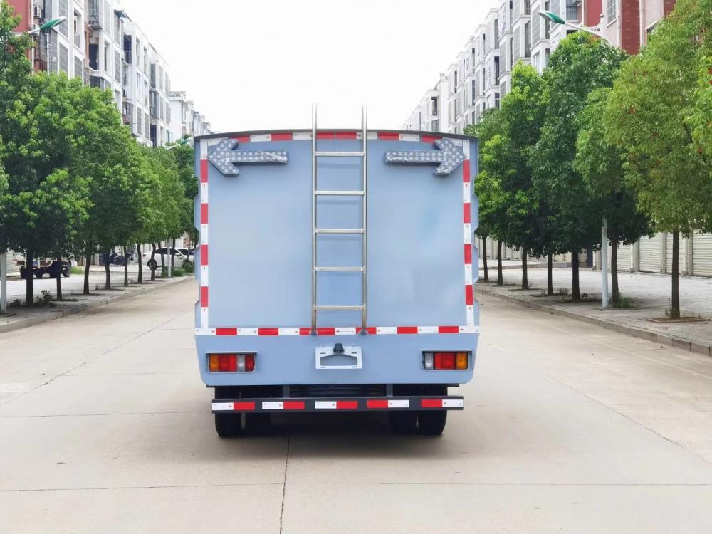 3、車廂體前部設(shè)自動護(hù)欄清洗車自動伸縮門,非作業(yè)狀態(tài)時內(nèi)藏清洗工作裝置,避免工作裝置外露,提高裝置使用壽命。