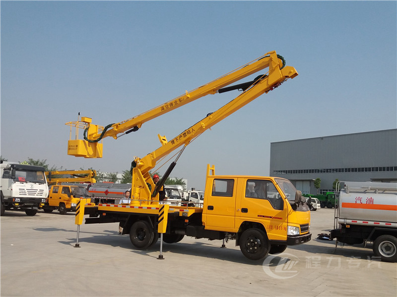 其他 該車前伸為800mm。選裝二節工作臂時,作業高度為12米; 選裝三節工作臂時,作業高度為14米和16米。防護材料:Q23**碳鋼,連接方式:左右側面及后下部防護均采用焊接連接,后部防護斷面尺寸(mm):170×50,后部防護離地高度(mm):350。ABS系統型號:APG3550500A,ABS系統生產廠家:浙江亞太機電股份有限公司。該車可選裝帶電控操作箱。專用裝置:吊臂,主要用于高空作業,進行維修、安裝、清洗、攝影、造船、化工、電力、剪枝、更換路燈及其他工程搶修作業。