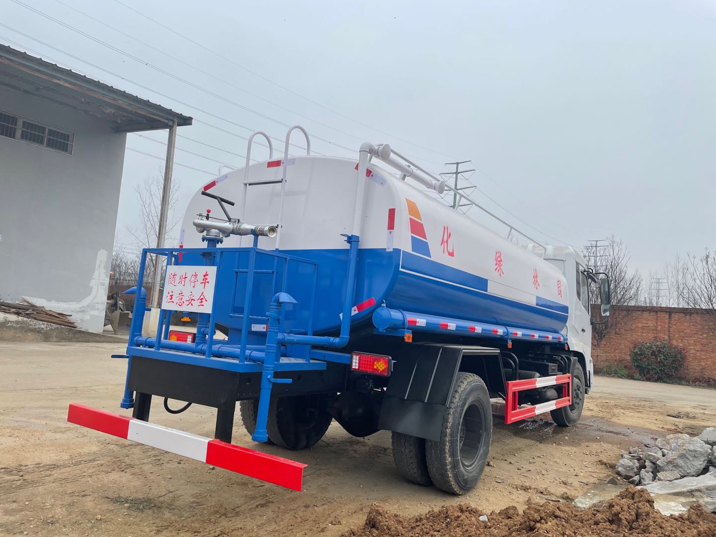 灑水功能:60/90灑水車專用水泵,前沖、后灑、側(cè)噴、高位花灑、后置工作平臺(tái)帶綠化水炮,射程25米。